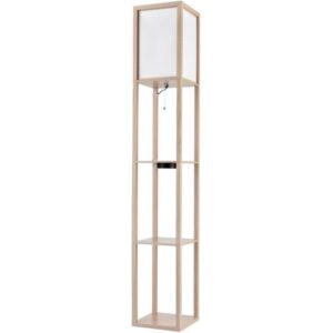 Торшер с полкой с беспроводной зарядкой Lumion Practic 8091/1F-47652 дерево/белый, дерево/текстиль Е27 1*60W 220V
