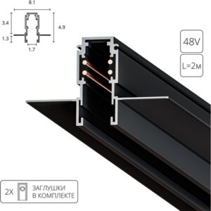 Шинопровод под гипсокартон встраиваемый магнитный 48V черный 2м Maytoni Technical Busbar trunkings Exility TRXM034-422B-94248