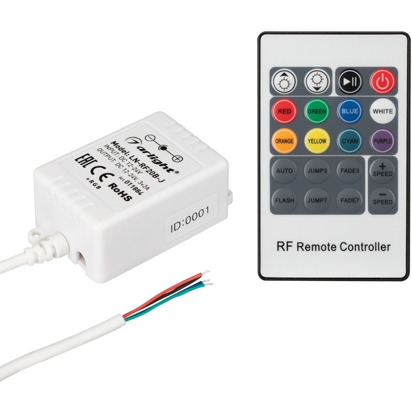 Контроллер с пультом 11884 от фабрики Arlight для светодиодных лент и модулей ШИМ. Материал изготовления – пластик, цвет белый, выходной сигнал PWM(ШИМ) CВ, 1 зона управления, выходная мощность 72 Вт – 144 Вт, выходное напряжение 12 В – 24 В, входное напряжение 12 В – 24 В, ток нагрузки 6 A, cтепень защиты от влаги и пыли IP20. Габариты: длина – 6,3 см, ширина – 3,5 см, высота – 2,2 см, крепление накладное. Технические особенности: возможно управление пультом. Заказывайте Arlight 11884 с быстрой доставкой! Контроллер LN-RF20B-J (12V, 72W, ПДУ 20кн) (Arlight, IP20 Пластик, 1 год) 011884 продается сейчас по цене 1 164 ₽. Оформляйте заказ в интернет-магазине Лю.ру!