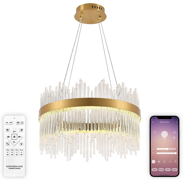 Подвесная люстра с пультом, светодиодная 8315 INNOVATION STYLE 83156 от немецкой фабрики Natali Kovaltseva подходит для размещения в гостиной, в спальне, на кухне, над обеденным столом, в кабинете, в офисе, в стиле модерн. Материал изготовления – металл, цвет прозрачный. Модель имеет 1 плафон (хрусталь). Цоколь LED. Освещаемая площадь до 18 кв. м, световой поток 7840 lm, цветовая температура 3200/4300/6500 К, холодный, нейтральный, теплый цвет свечения c белым оттенком. Мощность 112 W, питание от сети 220 V. Габариты: длина – 50 см, ширина – 50 см, высота – 25 см, крепление на монтажную пластину. Технические особенности: регулировка по высоте, регулировка яркости, регулировка цветовой температуры, ночной режим, можно подключить к диммеру, возможно управление пультом, смартфоном. В комлекте светильник, ПДУ, паспорт, инструкция, лампочки. Заказывайте Natali Kovaltseva INNOVATION STYLE 83156 по лучшей стоимости с быстрой доставкой! Подвесная люстра светодиодная нимб с пультом ДУ 112W, золото, LED Natali Kovaltseva 8315 INNOVATION STYLE 83156 продается сейчас по цене 11 192 ₽. Производитель Natali Kovaltseva дает гарантию на свои товары из раздела Люстры. Оформляйте заказ в интернет-магазине Лю.ру!